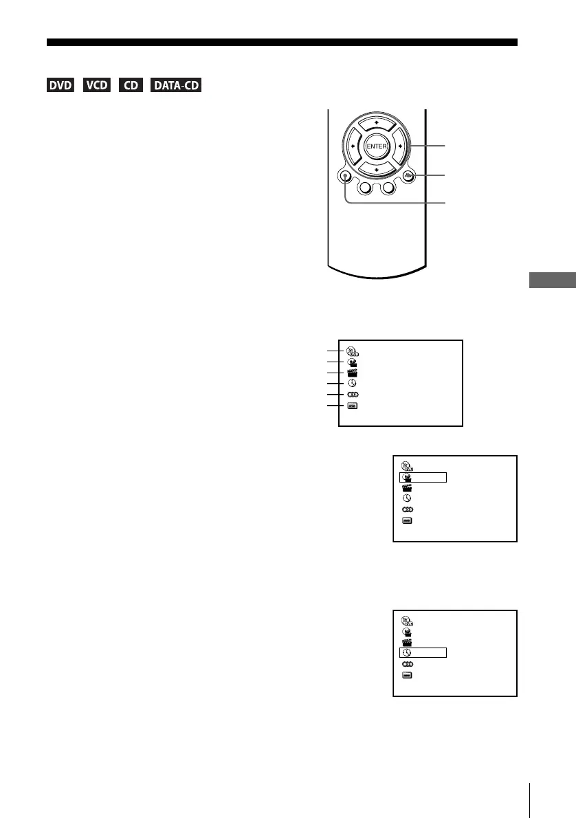 Press DISPLAY. The following information appears; type of disc, current title/track,