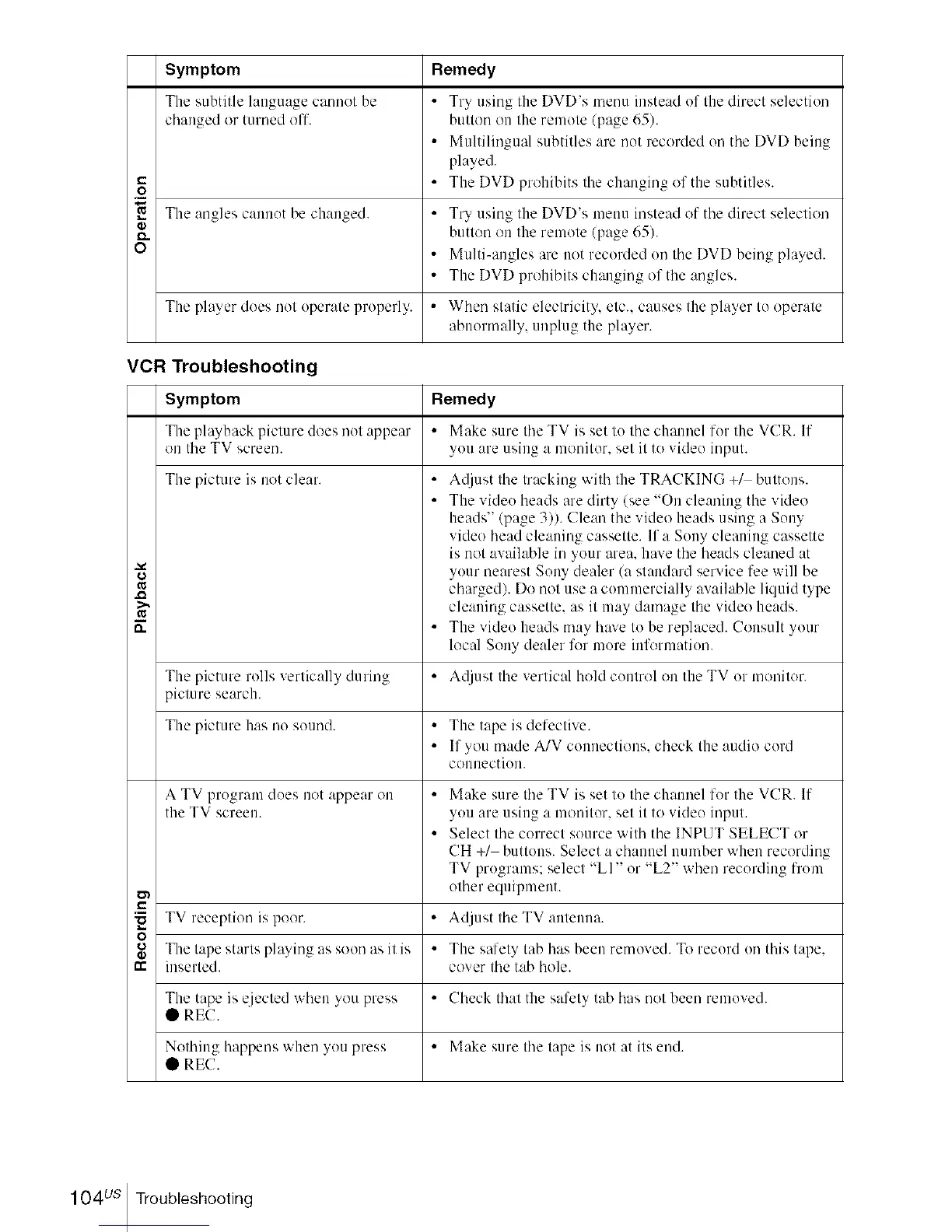 The playback picture does not appear • ]Make sure tile TV is set to tile channel for the VCR. If