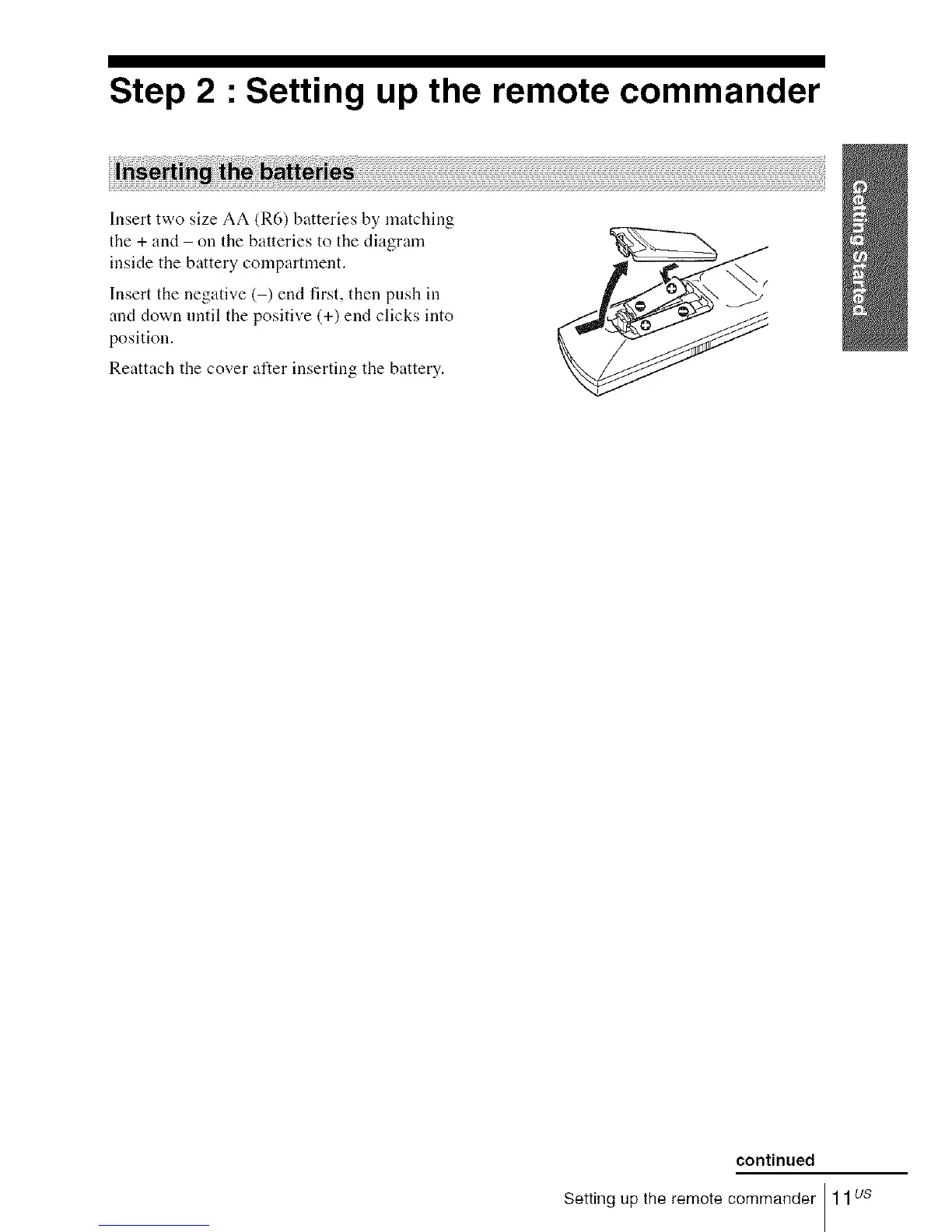 Setting up the remote commander 11us