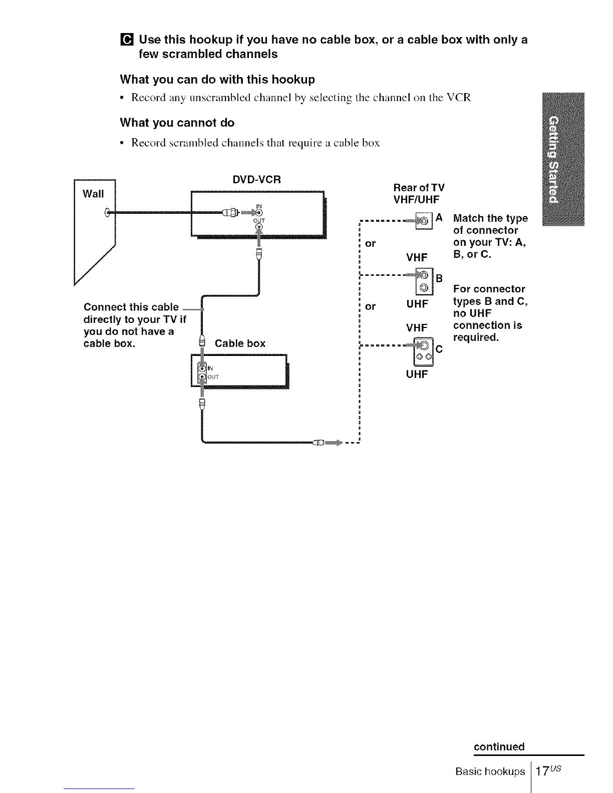 [] Use this hookup if you have no cable box, or a cable box with only a