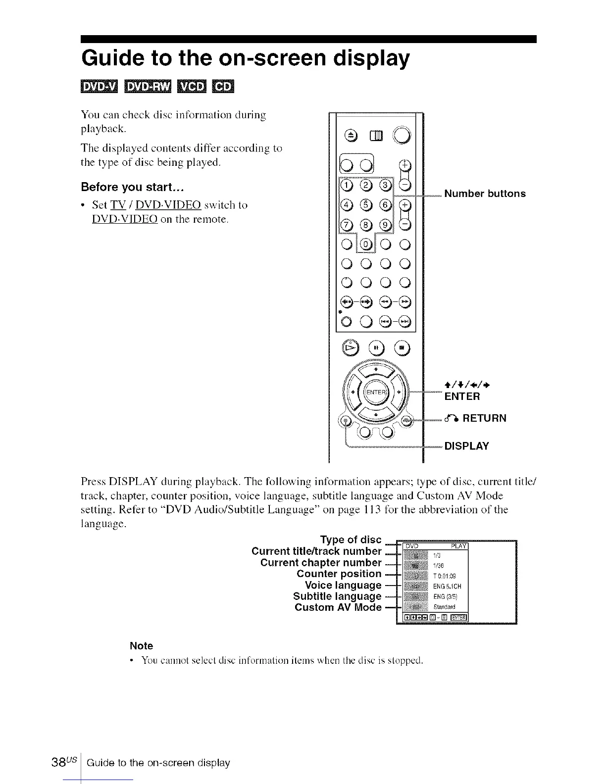 track, chapter, counter position, voice language, subtitle language and Custom AV Mode