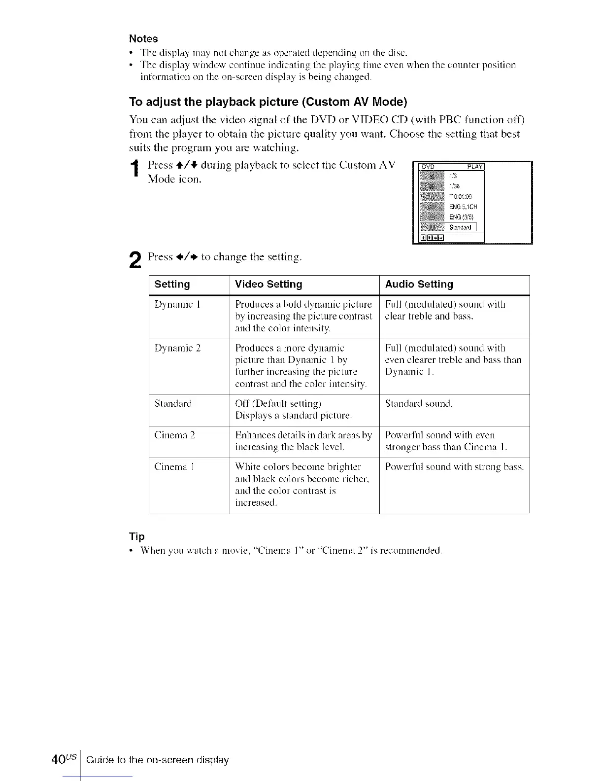 from the player to obtain the picture quality yon want. Choose the setting that best