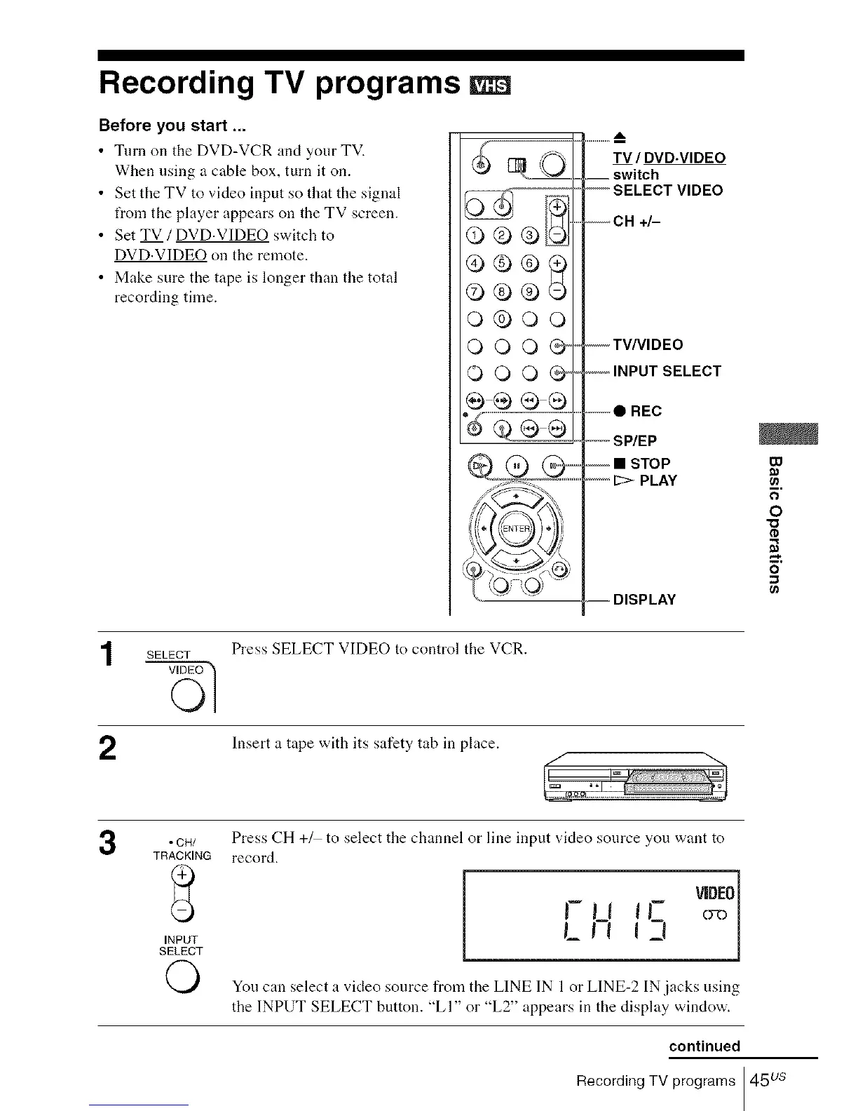 You can select a video source from the LINE IN 1or LINE-2 IN.jacks using