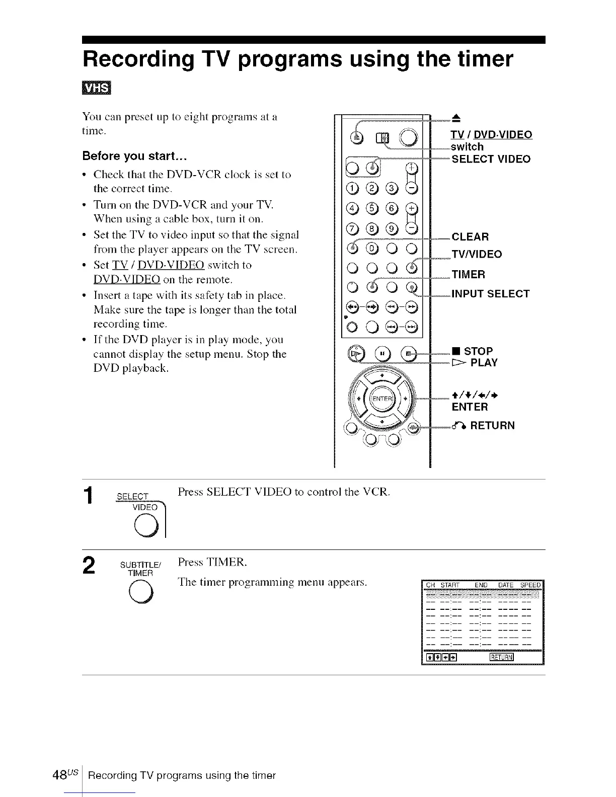48us Recording TV programs using the timer
