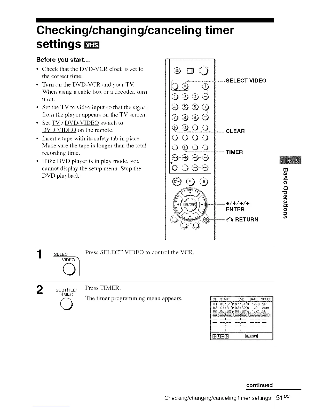 Checking/changing/canceling timer settings 51us