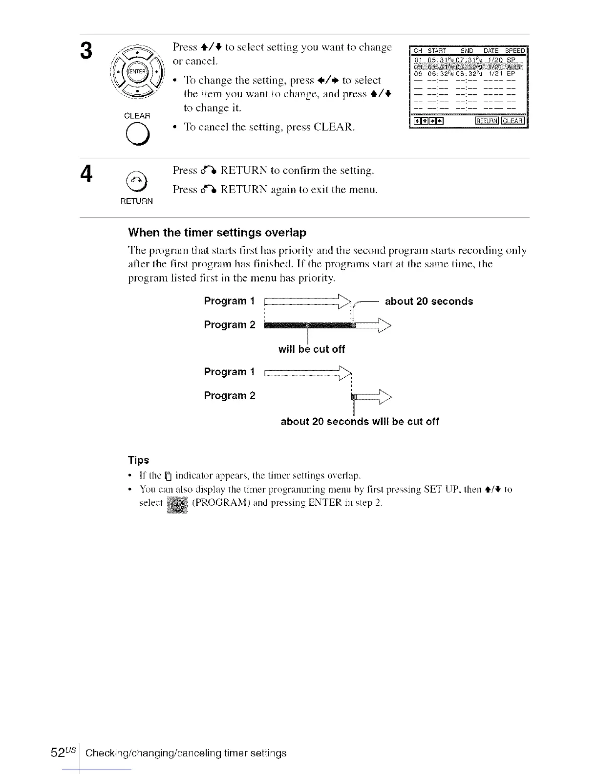 52us Checking/changing/cancelingtimer settings