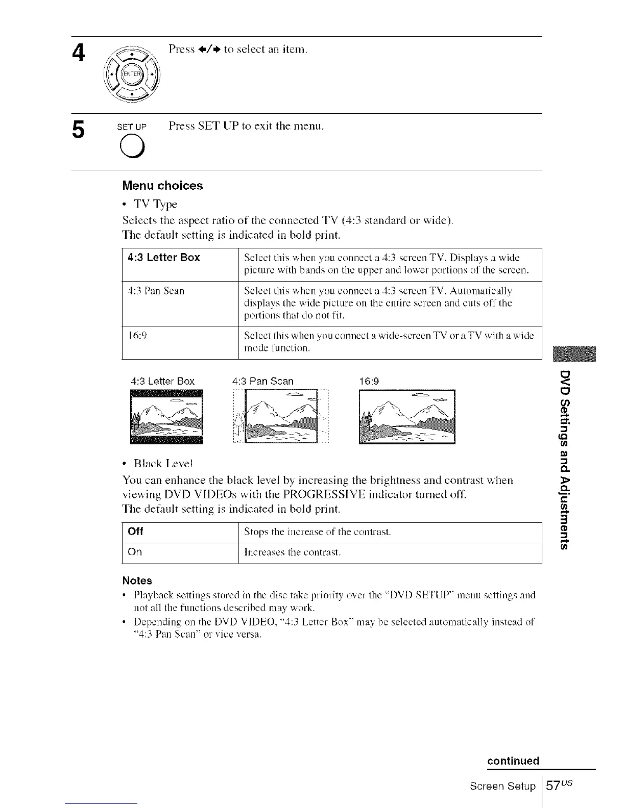 • Depending on the DVD VIDEO, "4:3 Letter Box" may be selected automatically instead of