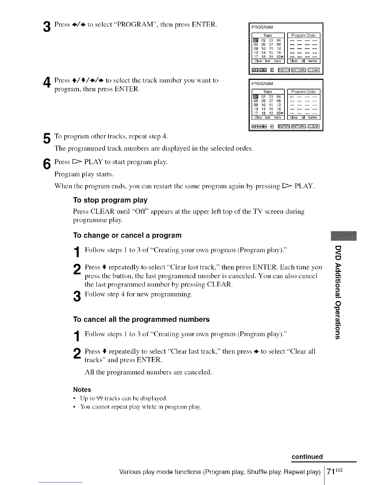Various play mode functions (Program play, Shuffle play, Repeat play) 71us