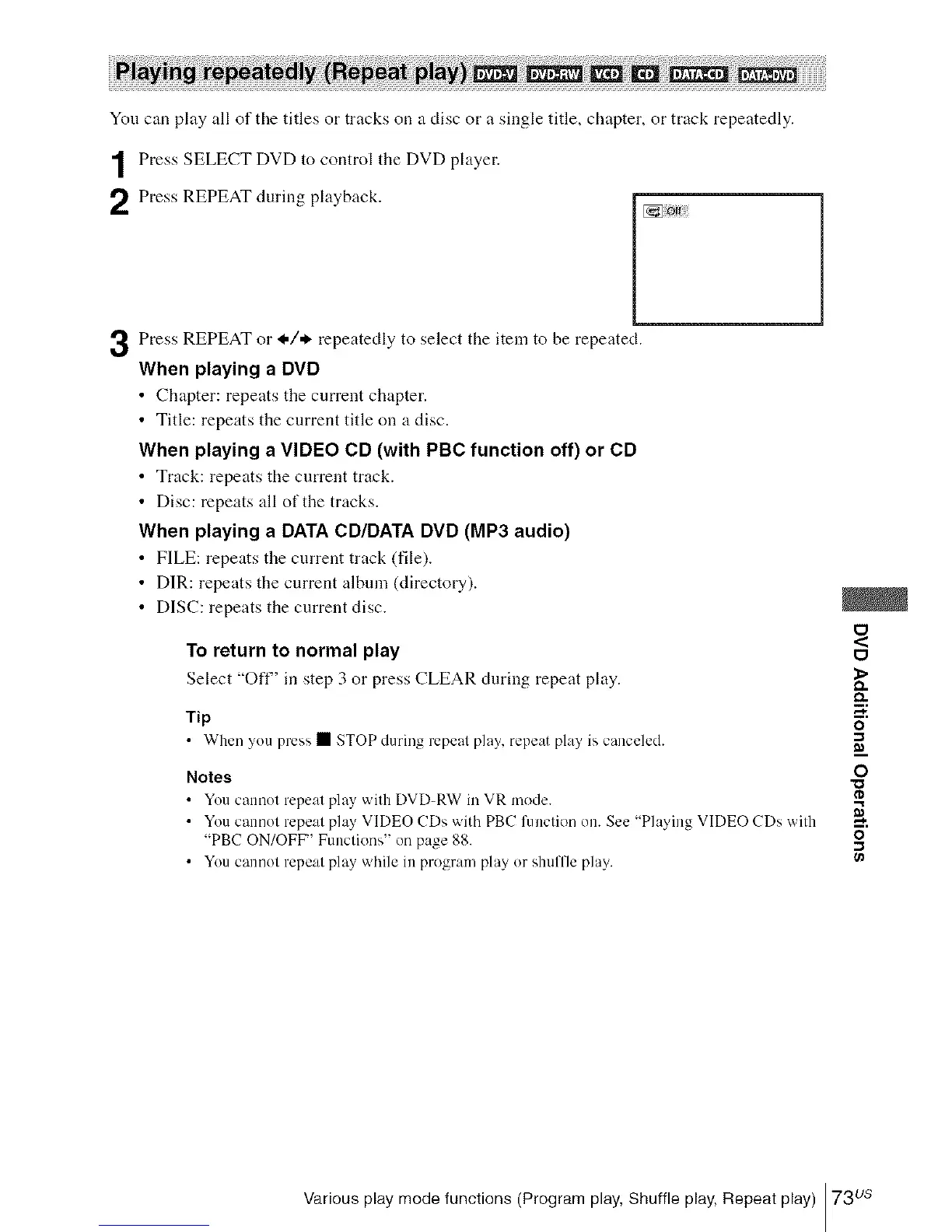Various play mode functions (Program play, Shuffle play, Repeat play) 73 us