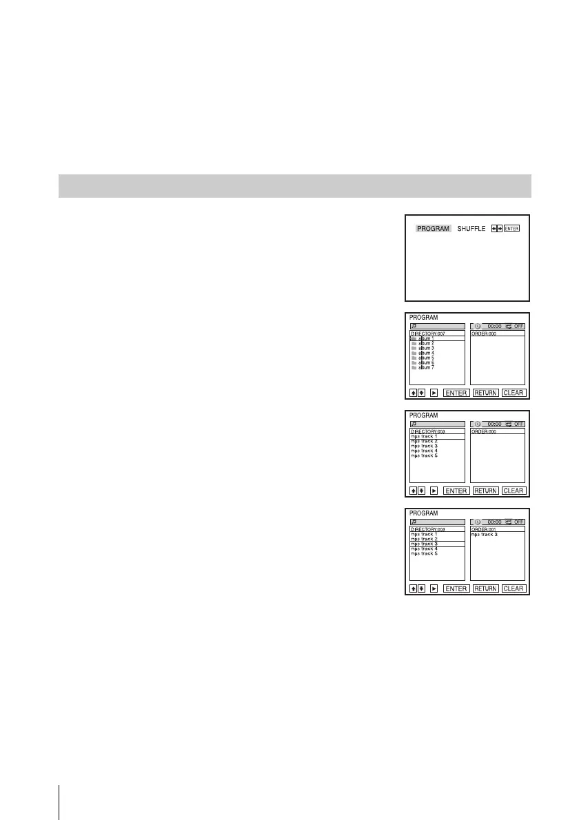 The programmed tracks are displayed in the selected order. Press CLEAR to cancel the last