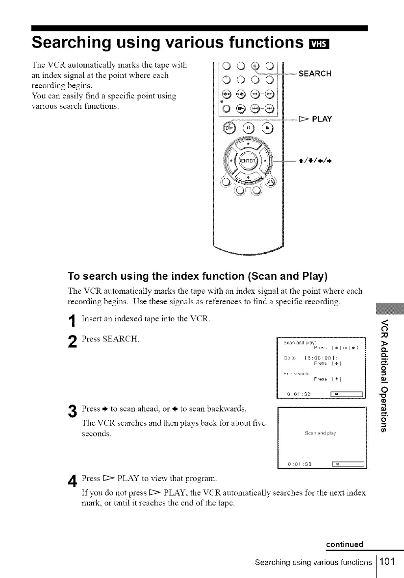 If you do not press 1_ PLAY, the VCR automatically searches for the next index