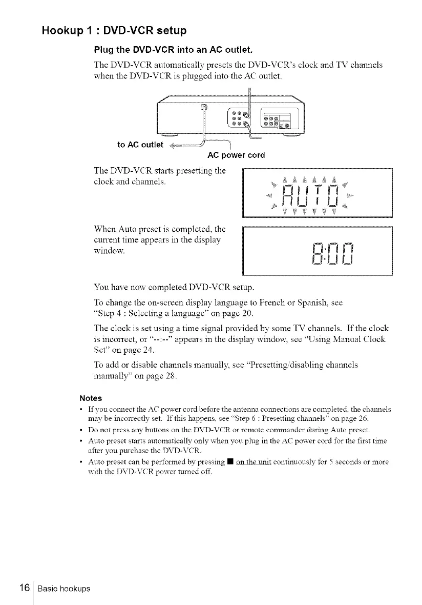 The DVD-VCR automatically presets the DVD-VCR's clock and TV channels