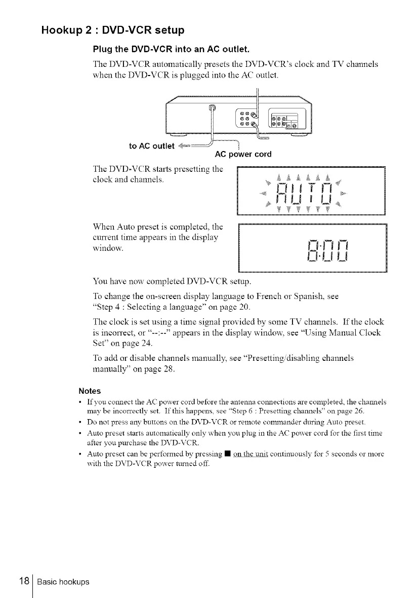 The DVD-VCR automatically presets the DVD-VCR's clock and TV channels