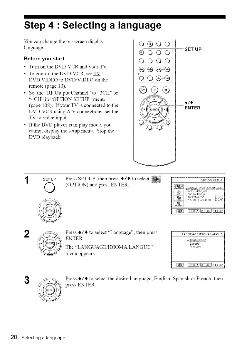 • Turn on the DVD-VCR and your TV.