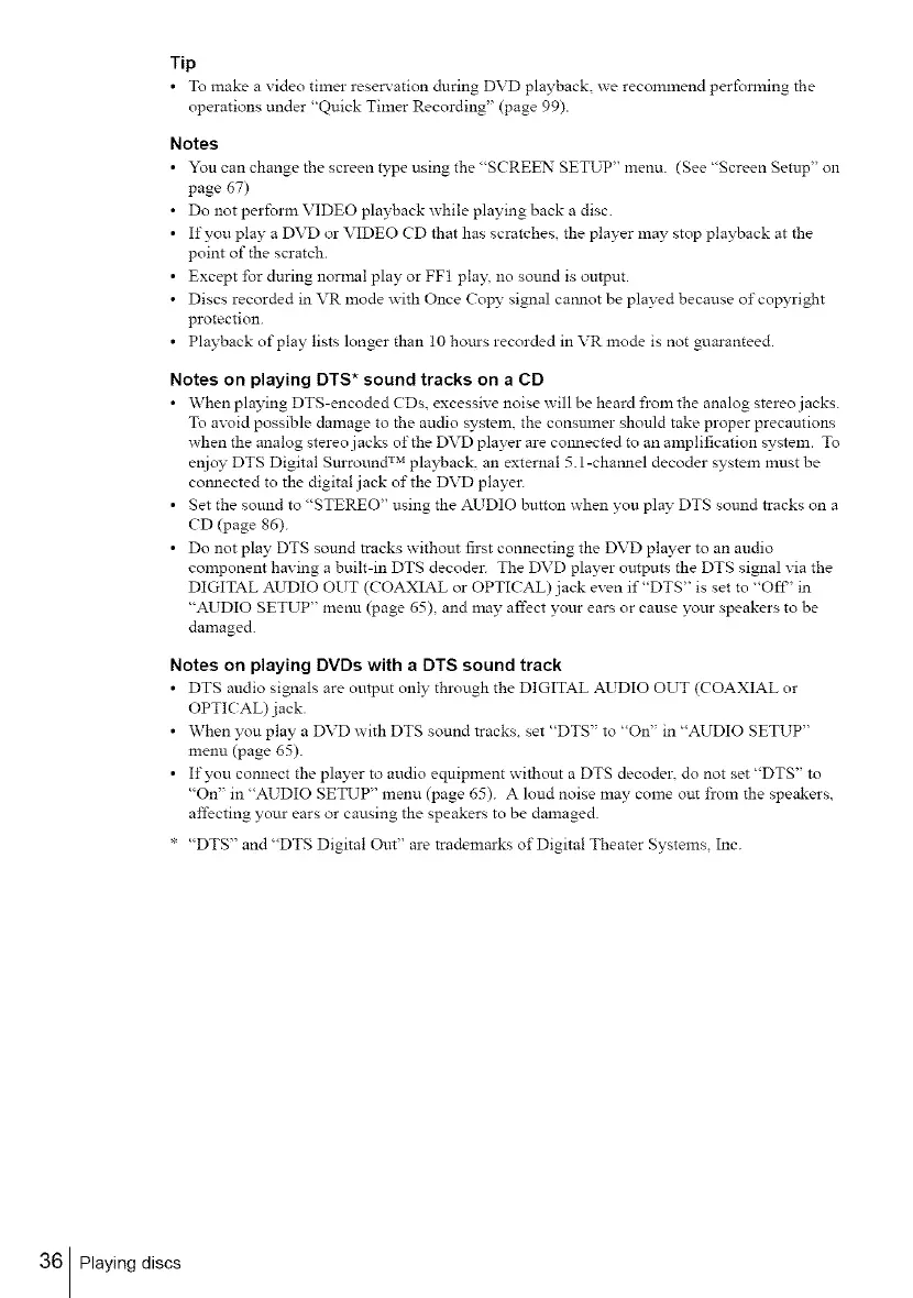 • Do not play DTS sound tracks withom first connecting the DVD player to an audio