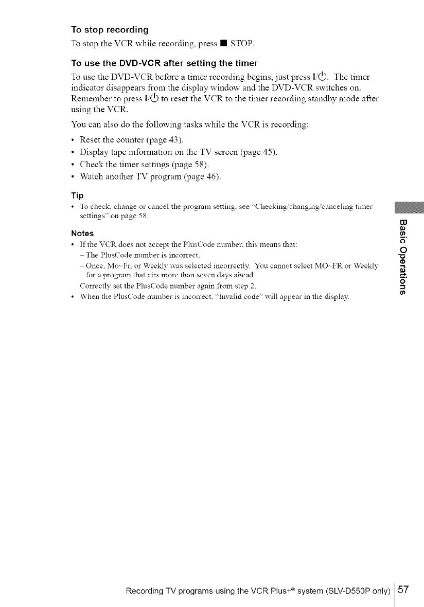 To use the DVD-VCR belbre a timer recording begins, just press I/@. The timer