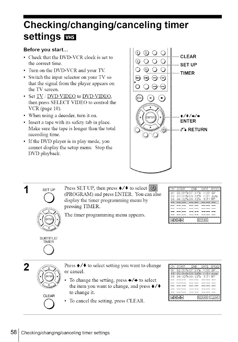 58 Checking/changing/canceling timer settings