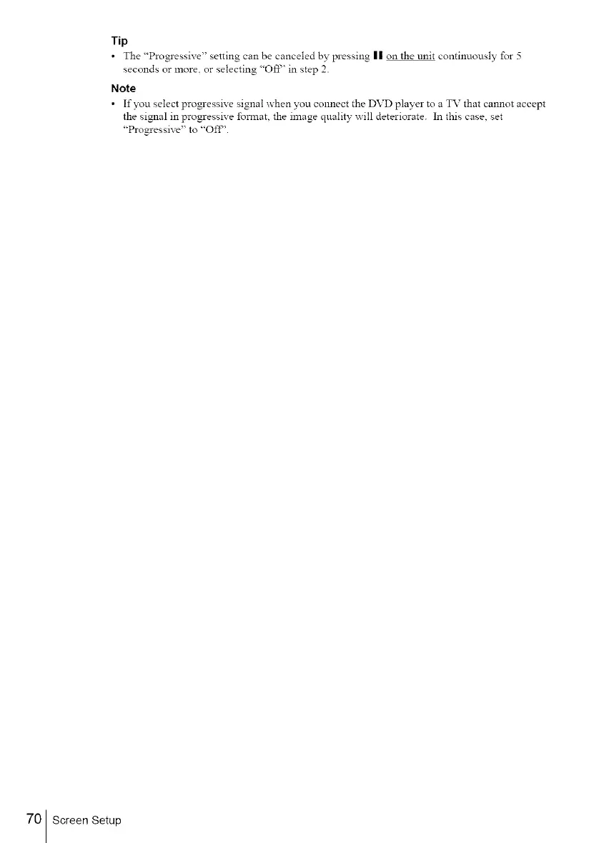 The "Progressive" setting can be canceled by pressing || on the unit continuously for 5