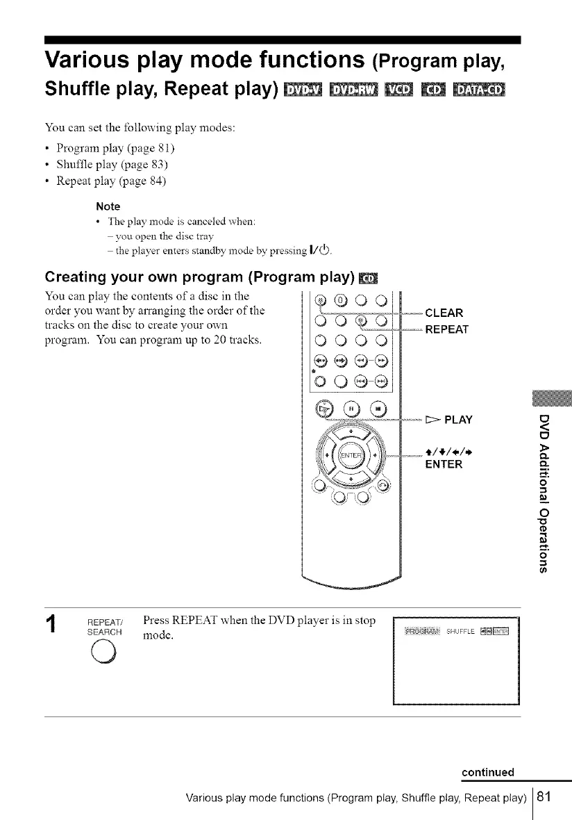 Various play mode functions (Program play, Shuffle play, Repeat play) 81