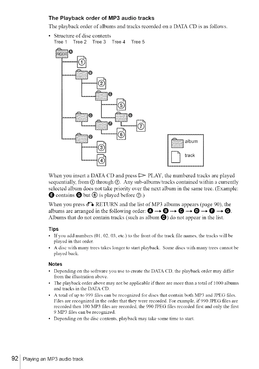 The playback order of albums and tracks recorded on a DATA CD is as follows.