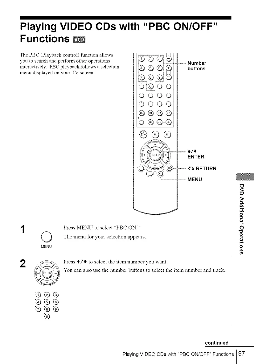 Playing VIDEO CDs with "PBC ON/OFF" Functions 97