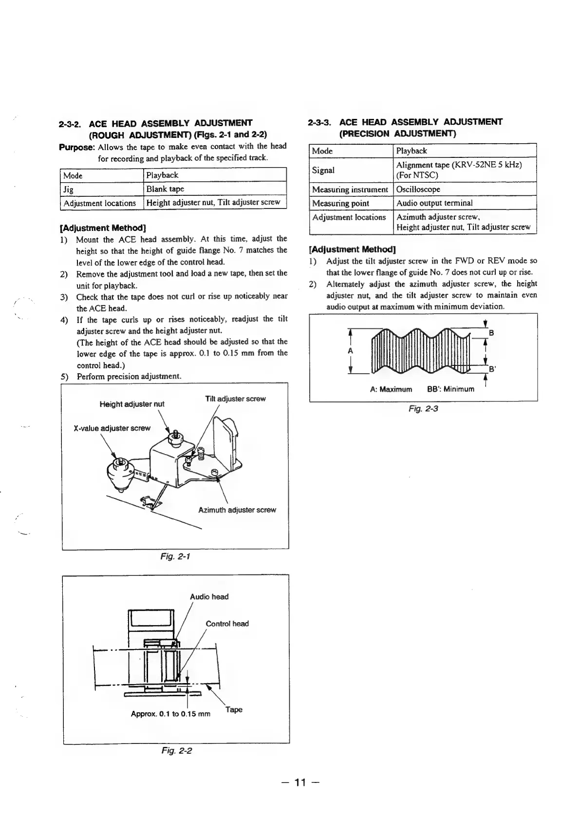 Sony SLV-E170EE - ACE Head Assembly Adjustment; ACE Head Assembly Adjustment (Rough Adjustment)