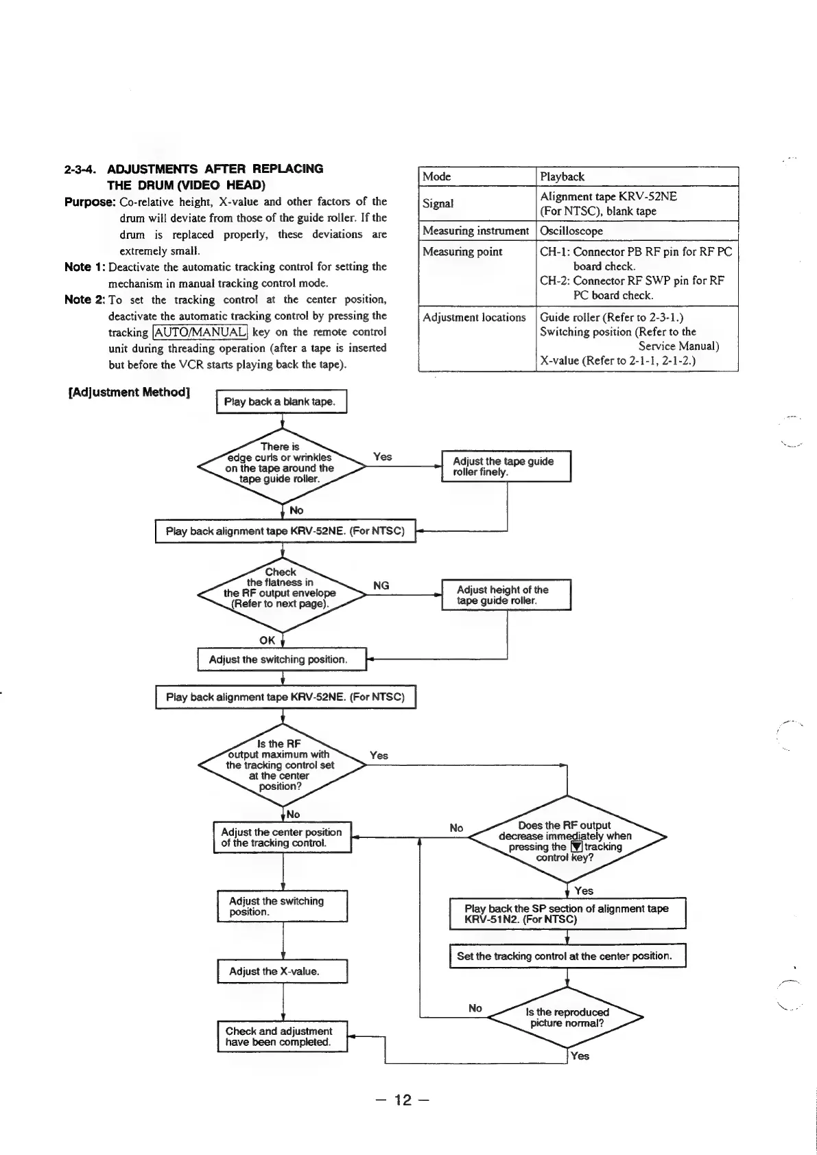 Sony SLV-E170EE - Adjustments after Replacing the Drum (Video Head)
