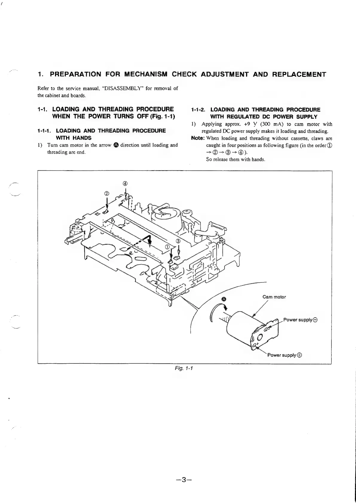 Sony SLV-E170EE - Preparation for Mechanism; Adjustment and; Loading and Threading Procedure with Hands; Loading and Threading Procedure with Regulated