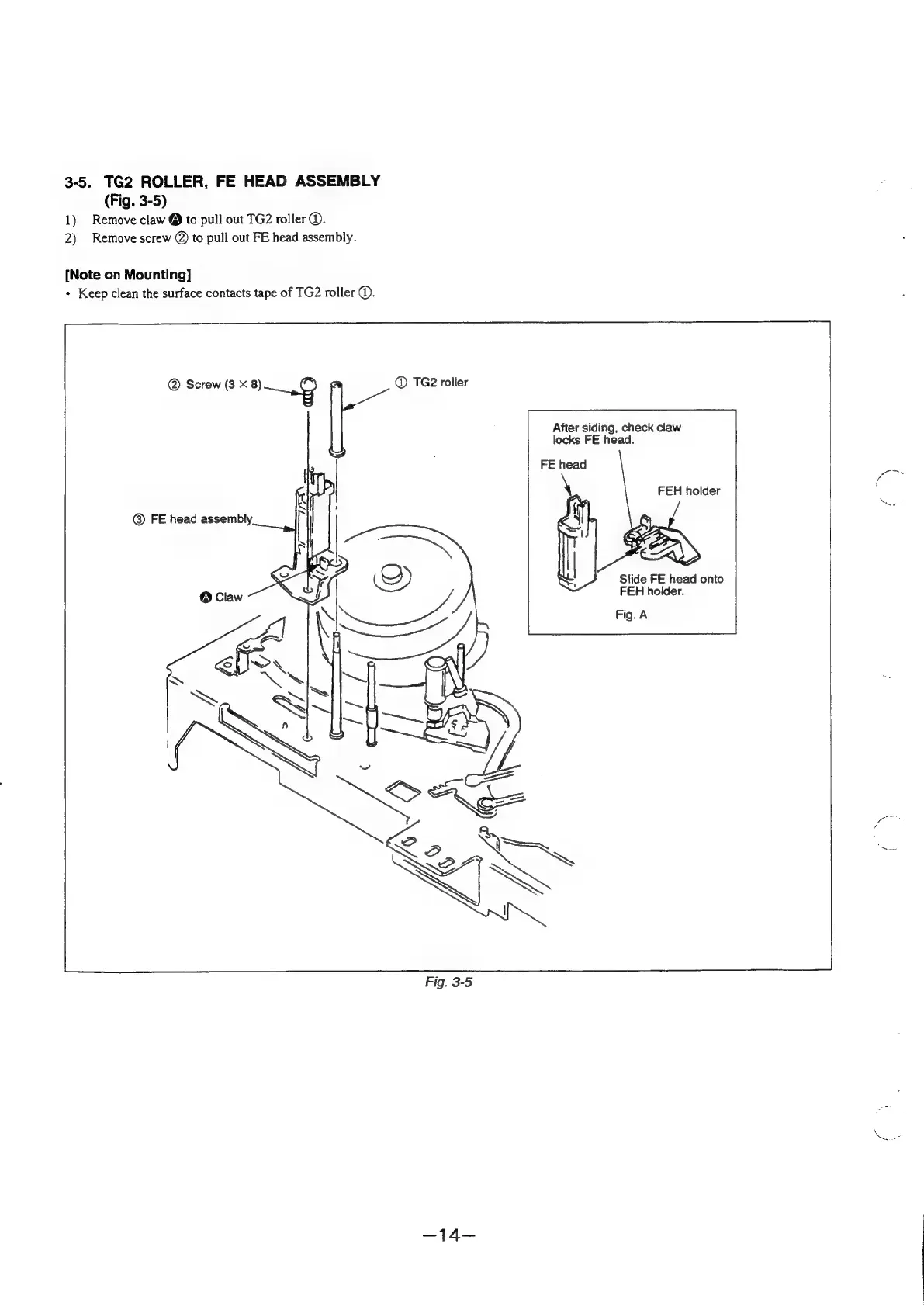 Sony SLV-E170EE - TG2 Roller, FE Head Assembly (Fig. 3-5)