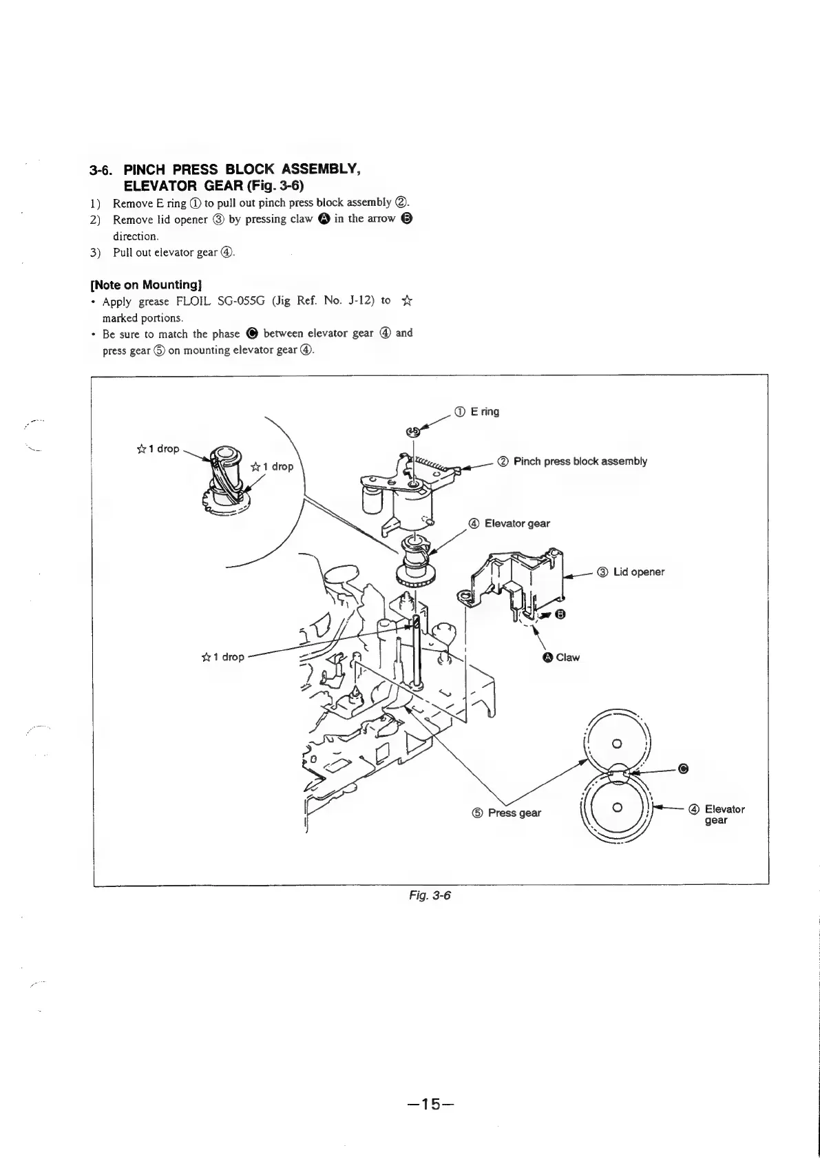 Sony SLV-E170EE - Pinch Press Block Assembly, Elevator Gear (Fig. 3-6)