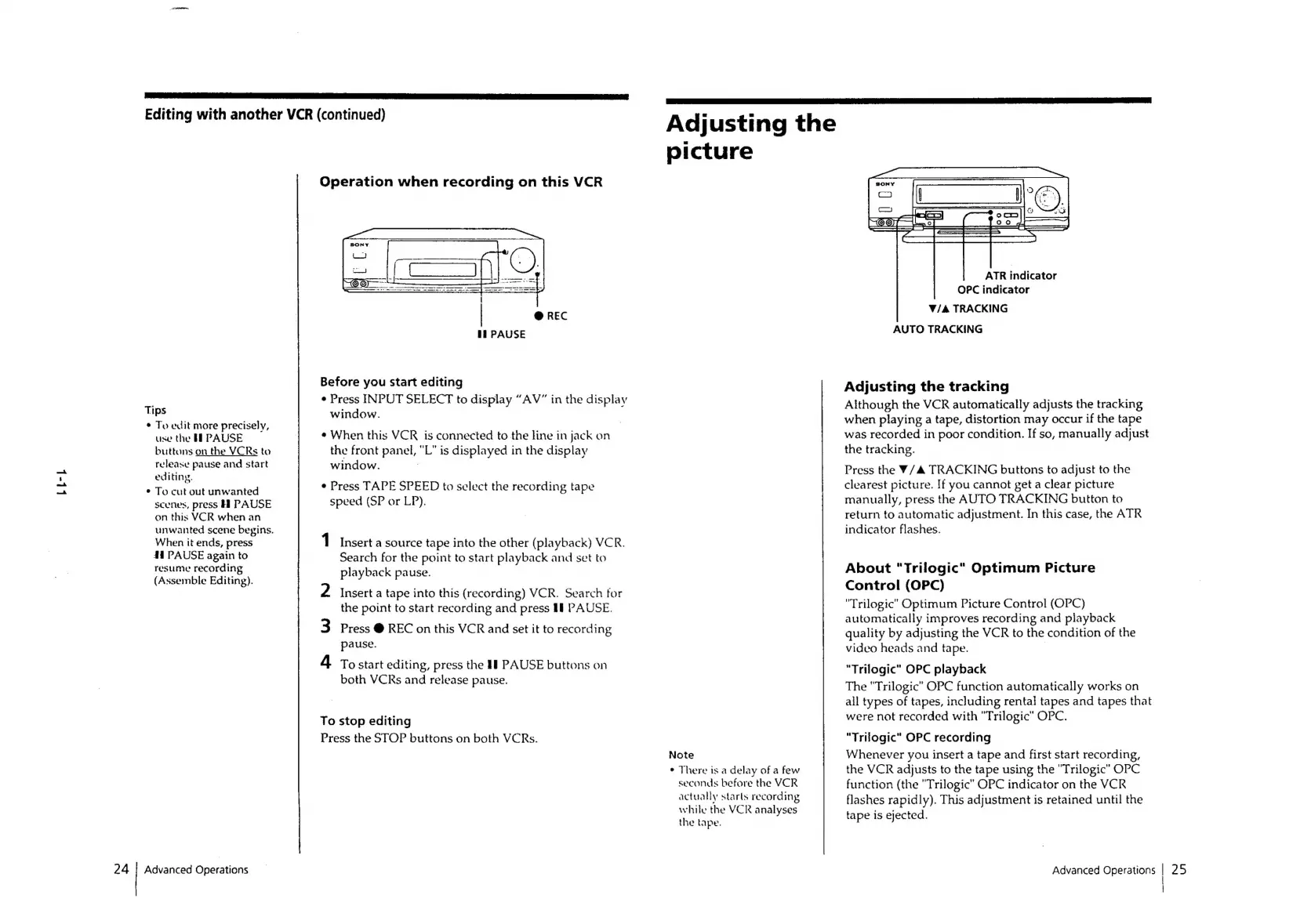 Sony SLV-E205EY - Advanced Operations; Adjusting the Picture