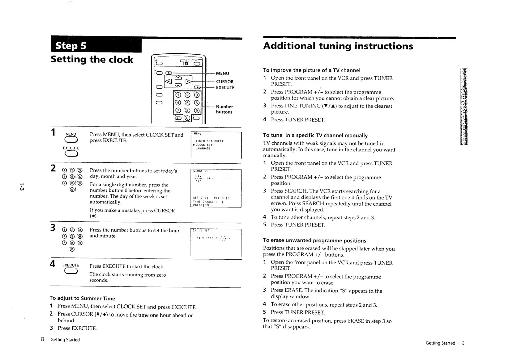 Sony SLV-E205EY - Step 5: Setting the clock; Additional Tuning Instructions