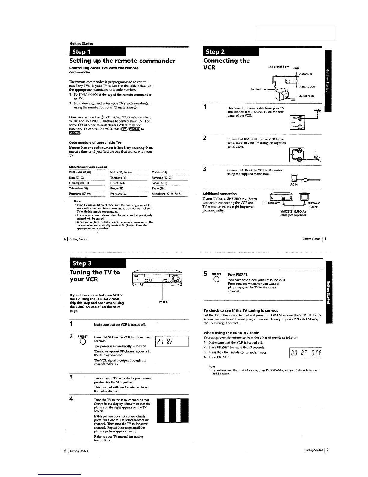 Sony SLV-E270CP - Step 1 Setting up the remote commander