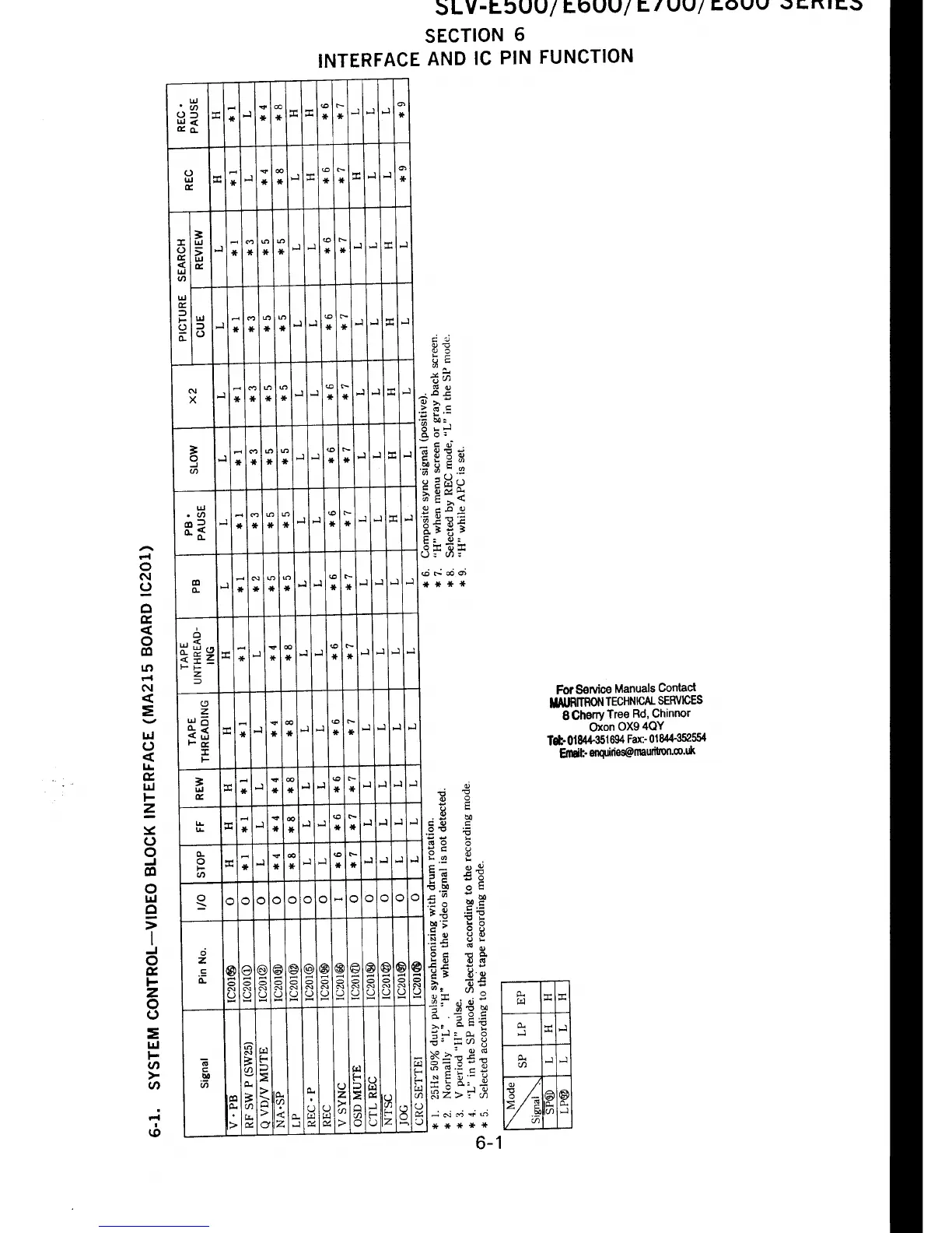 Sony SLV-E500AP - SECTION 6 INTERFACE AND IC PIN FUNCTION; 6-1. SYSTEM CONTROL - VIDEO BLOCK INTERFACE (MA215 BOARD IC201)