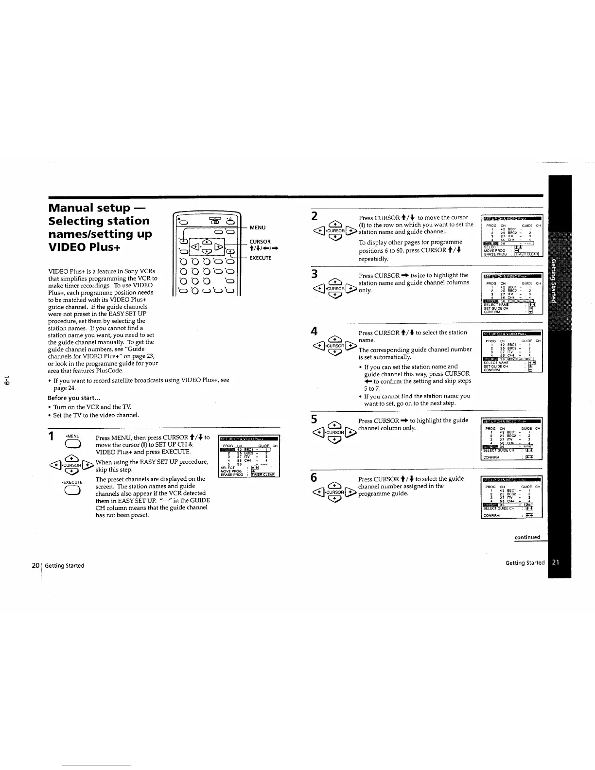 Sony SLV-E510EE - Manual setup - Selecting station names;setting up VIDEO Plus+