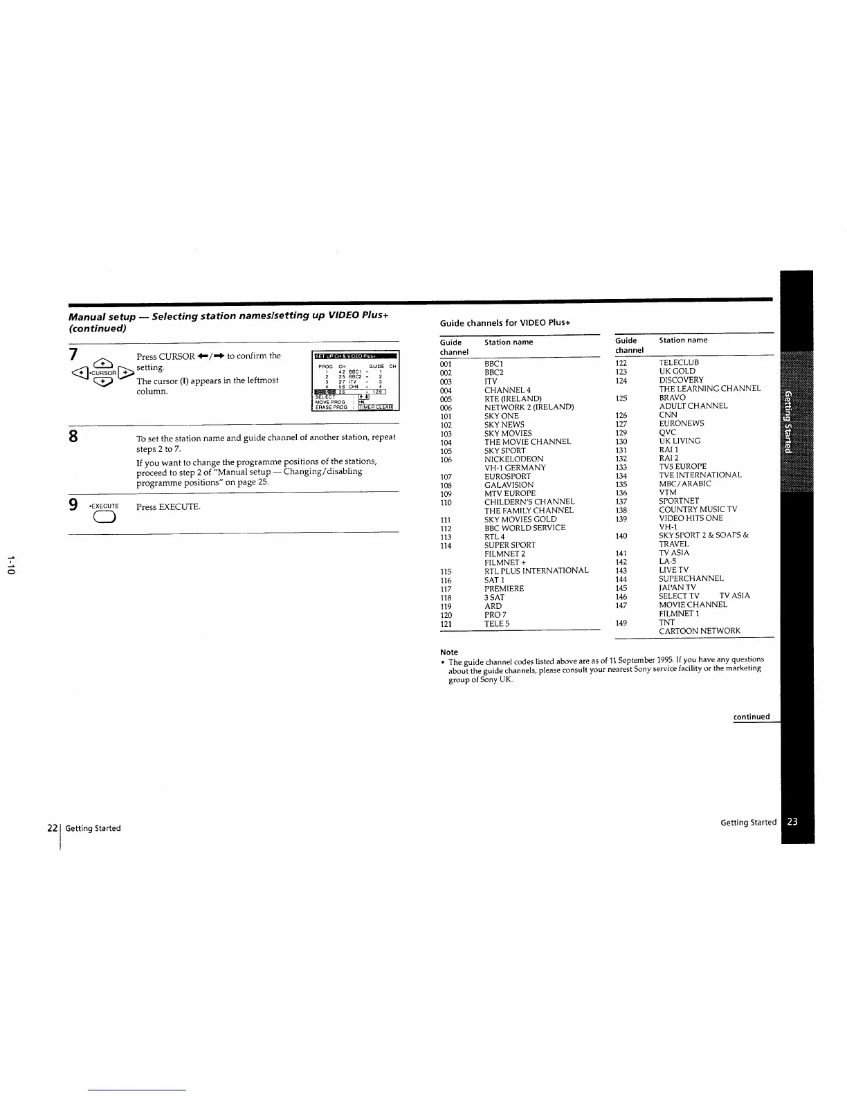 Sony SLV-E510EE - Guide Channels for VIDEO Plus+