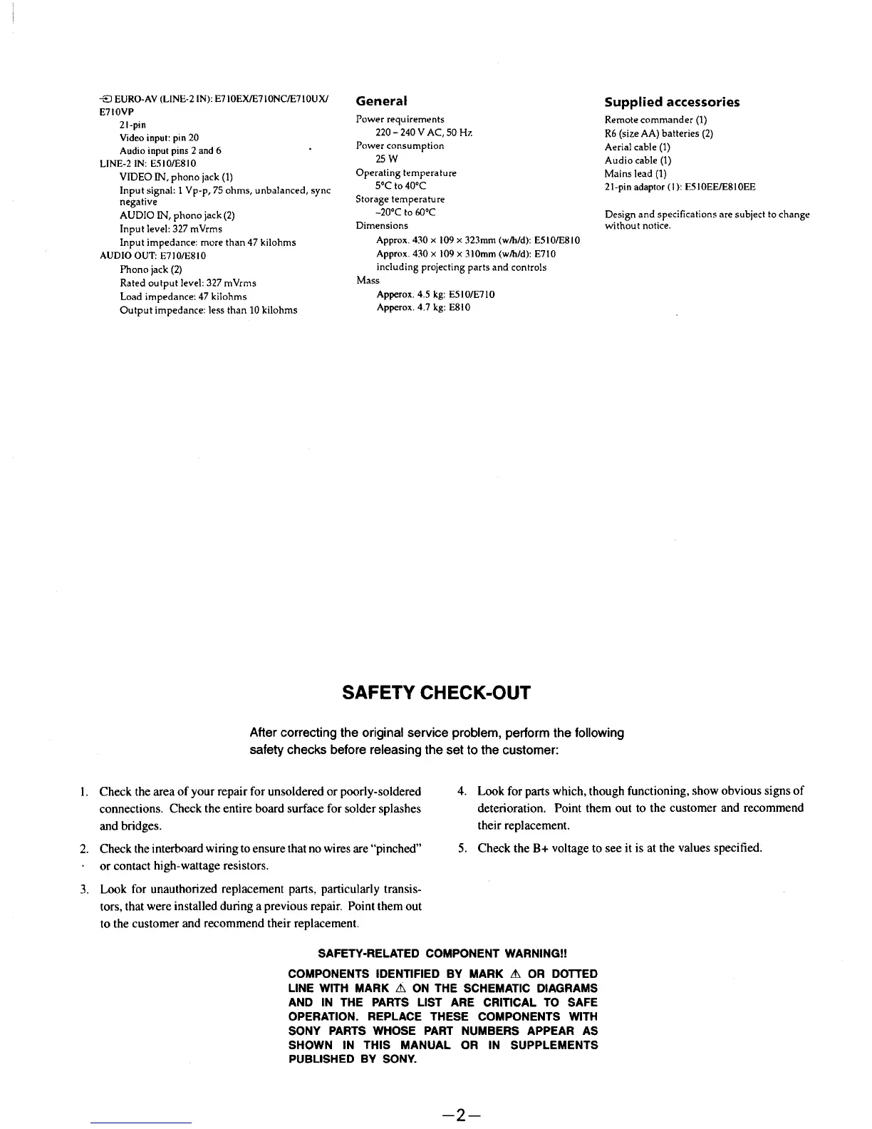 Sony SLV-E510EE - SAFETY CHECK-OUT