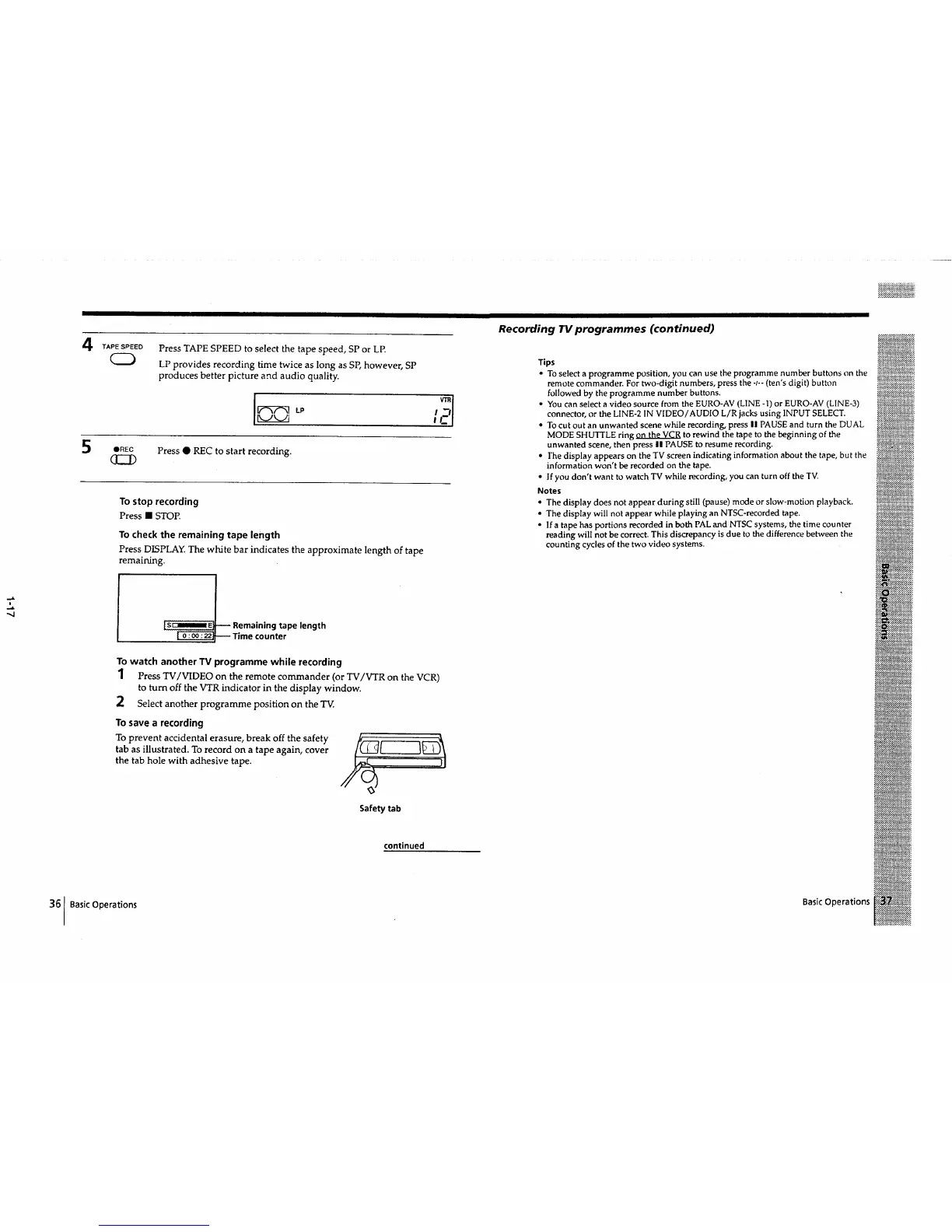 Sony SLV-E510EE - To Stop Recording; To Check the Remaining Tape Length; To Watch Another TV Programme While Recording; To Save a Recording