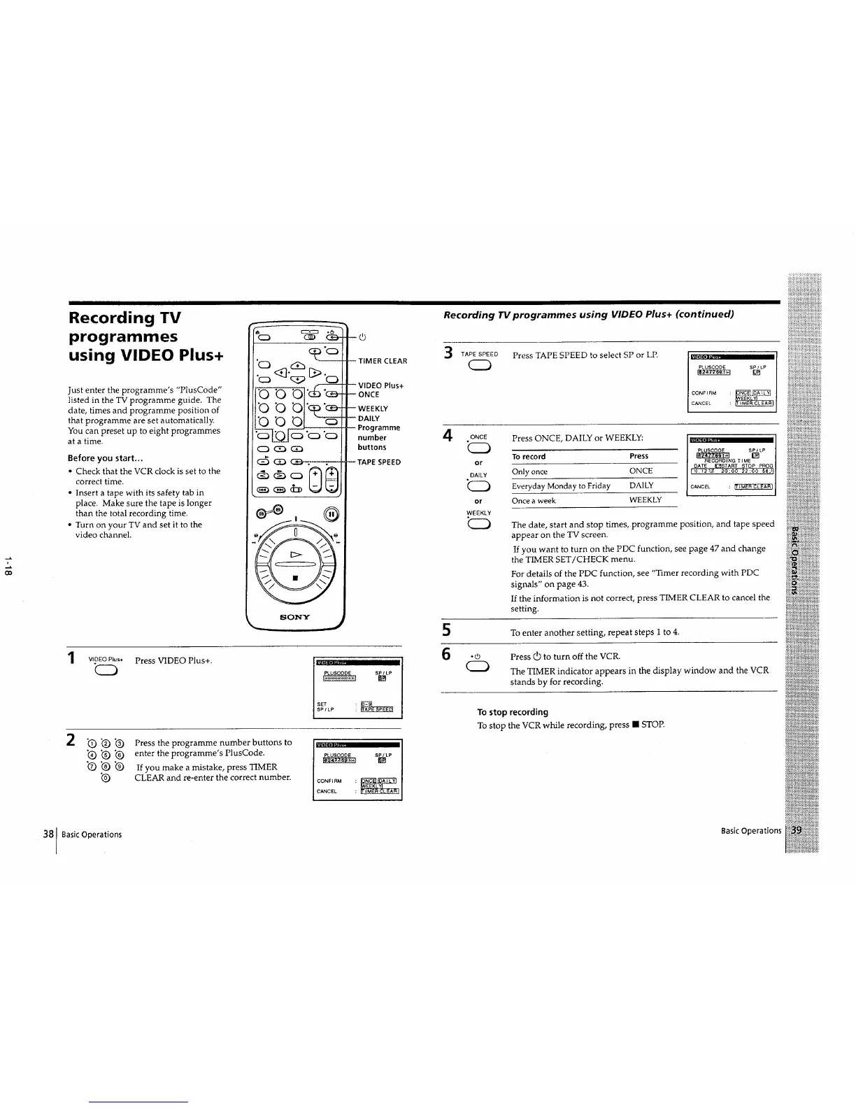 Sony SLV-E510EE - Recording TV programmes using VIDEO Plus+