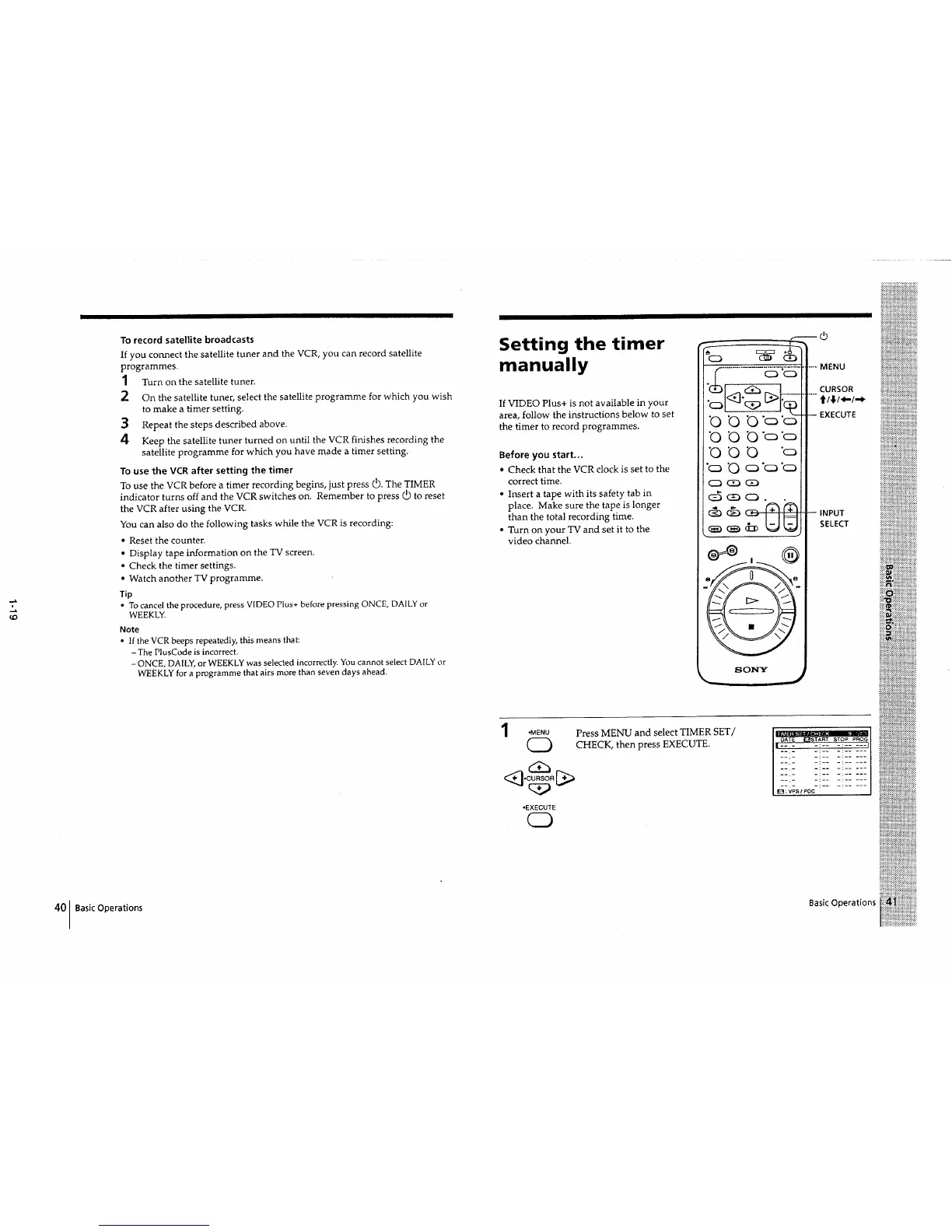 Sony SLV-E510EE - To record satellite broadcasts; Setting the timer manually