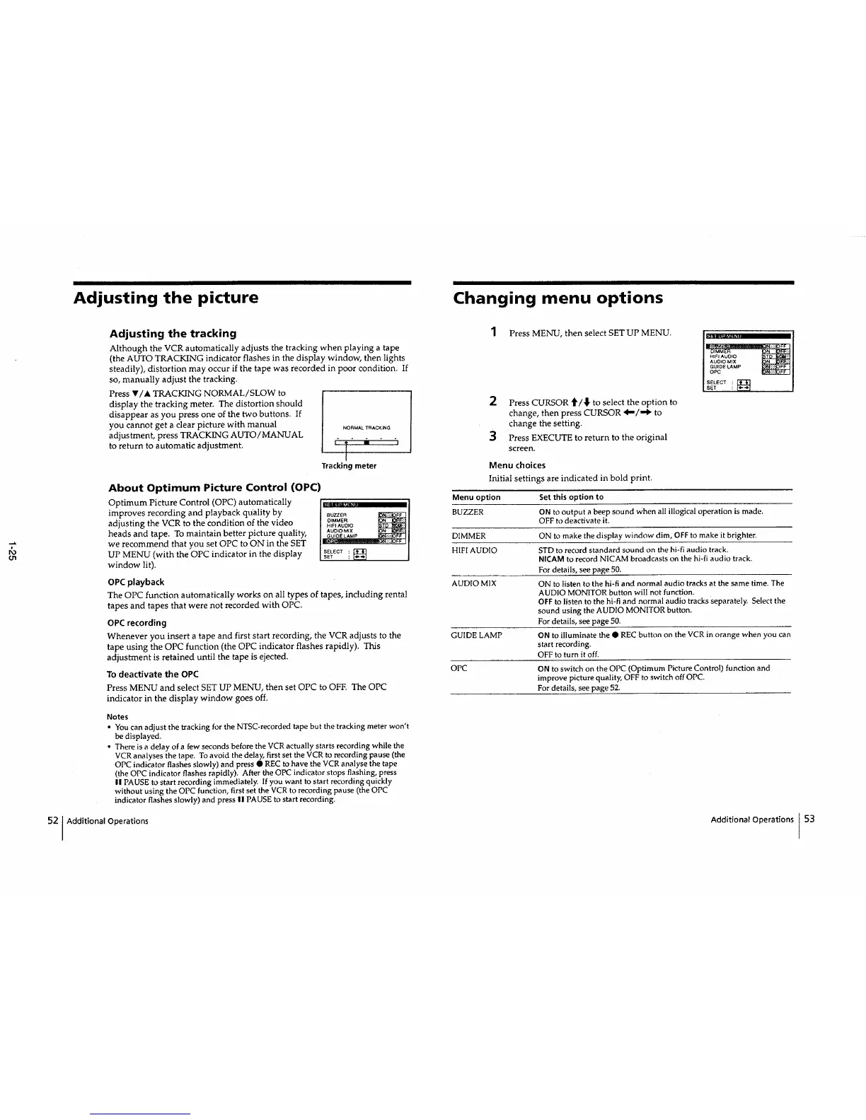 Sony SLV-E510EE - Adjusting the picture; Adjusting the tracking; About Optimum Picture Control (OPC); OPC playback