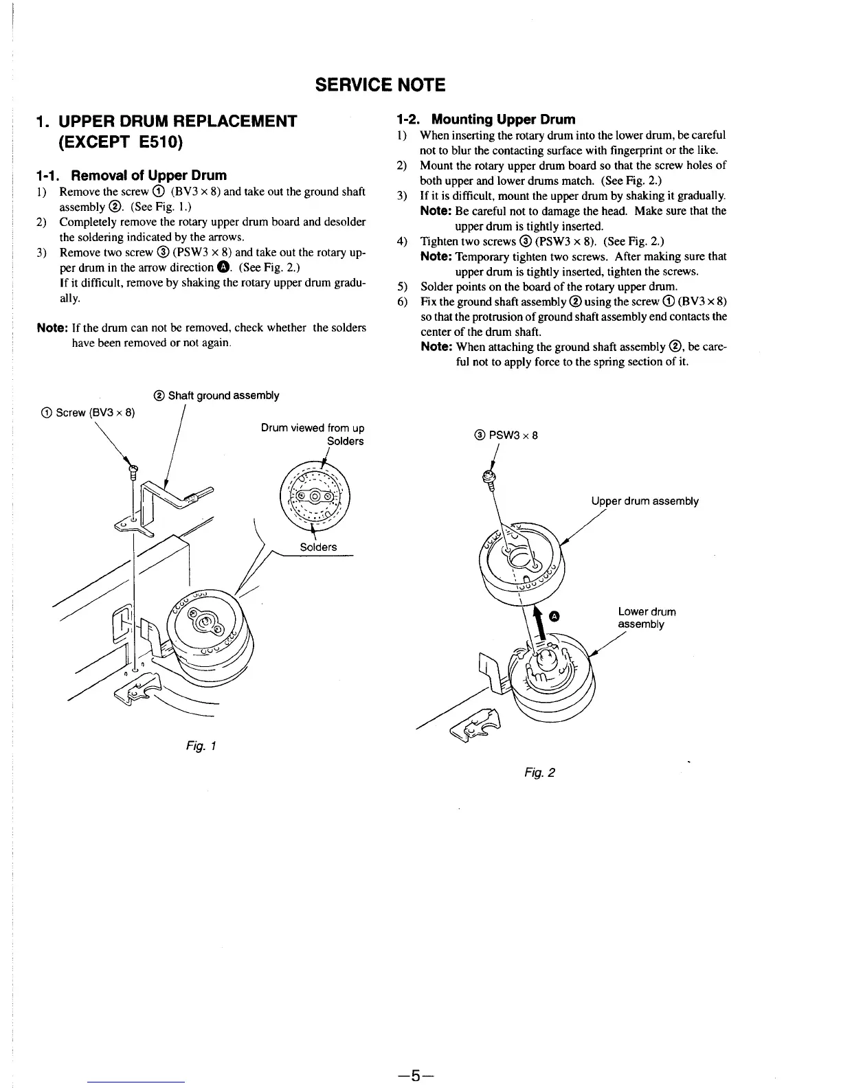 Sony SLV-E510EE - UPPER DRUM REPLACEMENT; Removal of Upper Drum; Mounting Upper Drum