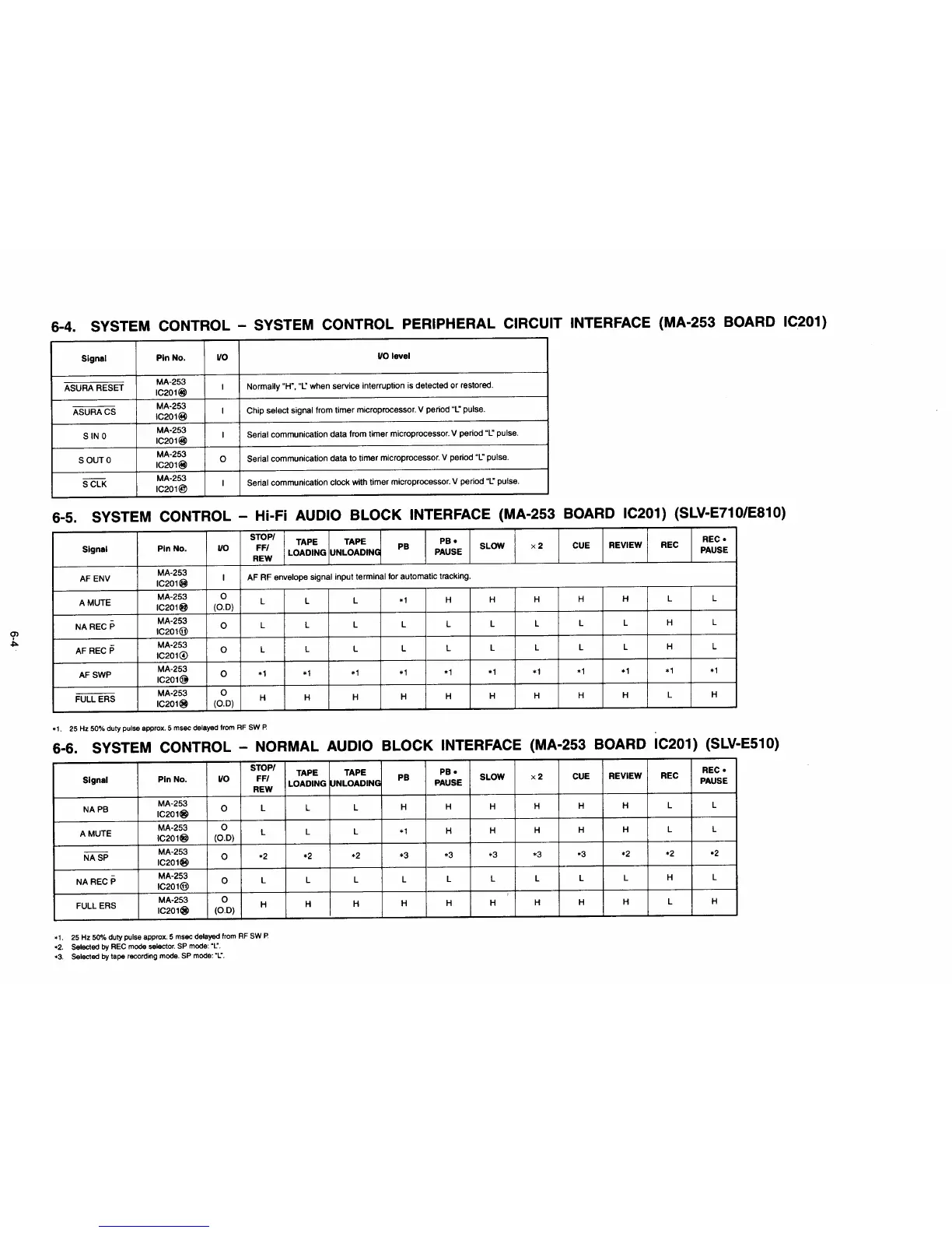 Sony SLV-E510EE - SYSTEM CONTROL - SYSTEM CONTROL PERIPHERAL CIRCUIT INTERFACE (MA-253 BOARD IC201); SYSTEM CONTROL - Hi-Fi AUDIO BLOCK INTERFACE (MA-253 BOARD IC201) (SLV-E710;E810); SYSTEM CONTROL - NORMAL AUDIO BLOCK INTERFACE (MA-253 BOARD IC201) (SLV-E510)