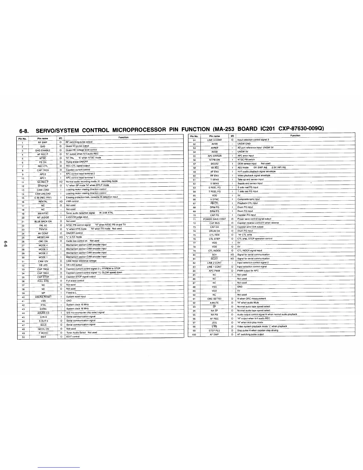 Sony SLV-E510EE - SERVO;SYSTEM CONTROL MICROPROCESSOR PIN FUNCTION (MA-253 BOARD IC201 CXP-87630-009 Q)