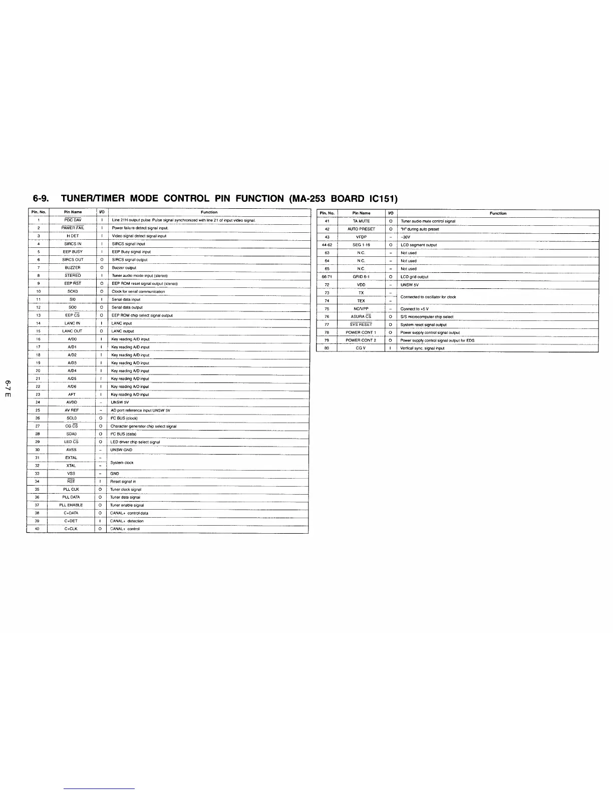 Sony SLV-E510EE - TUNER;TIMER MODE CONTROL PIN FUNCTION (MA-253 BOARD IC151)