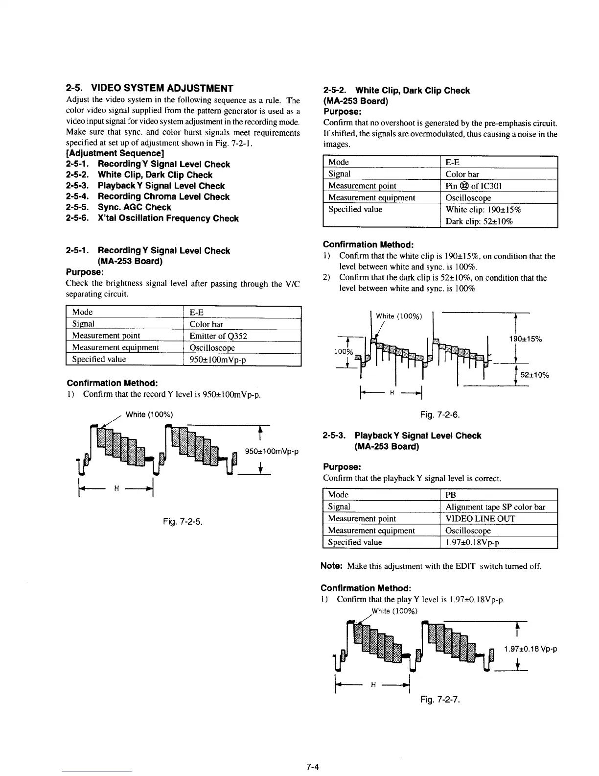 Sony SLV-E510EE - Video System Adjustment; Recording y Signal Level Check; White Clip, Dark Clip Check; Playback y Signal Level Check