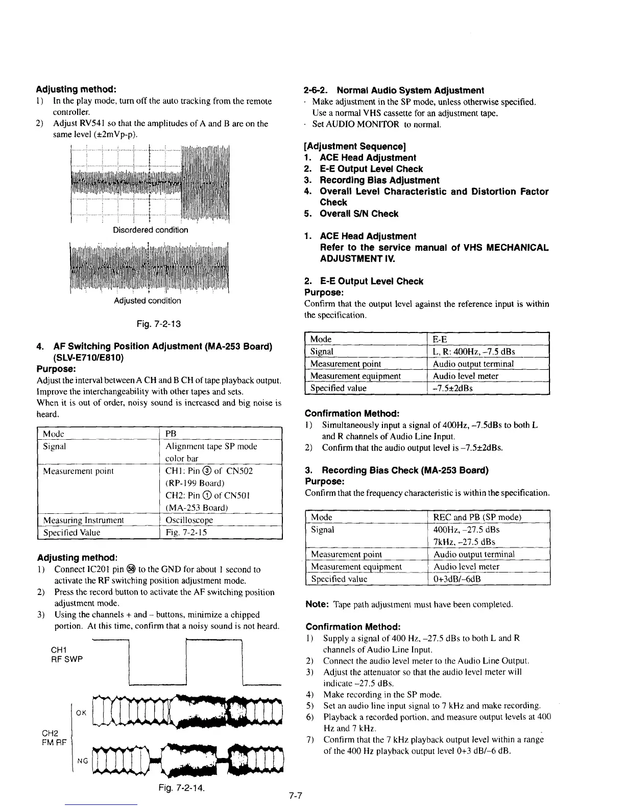 Sony SLV-E510EE - Normal Audio System Adjustment; AF Switching Position Adjustment; E-E Output Level Check; Recording Bias Check