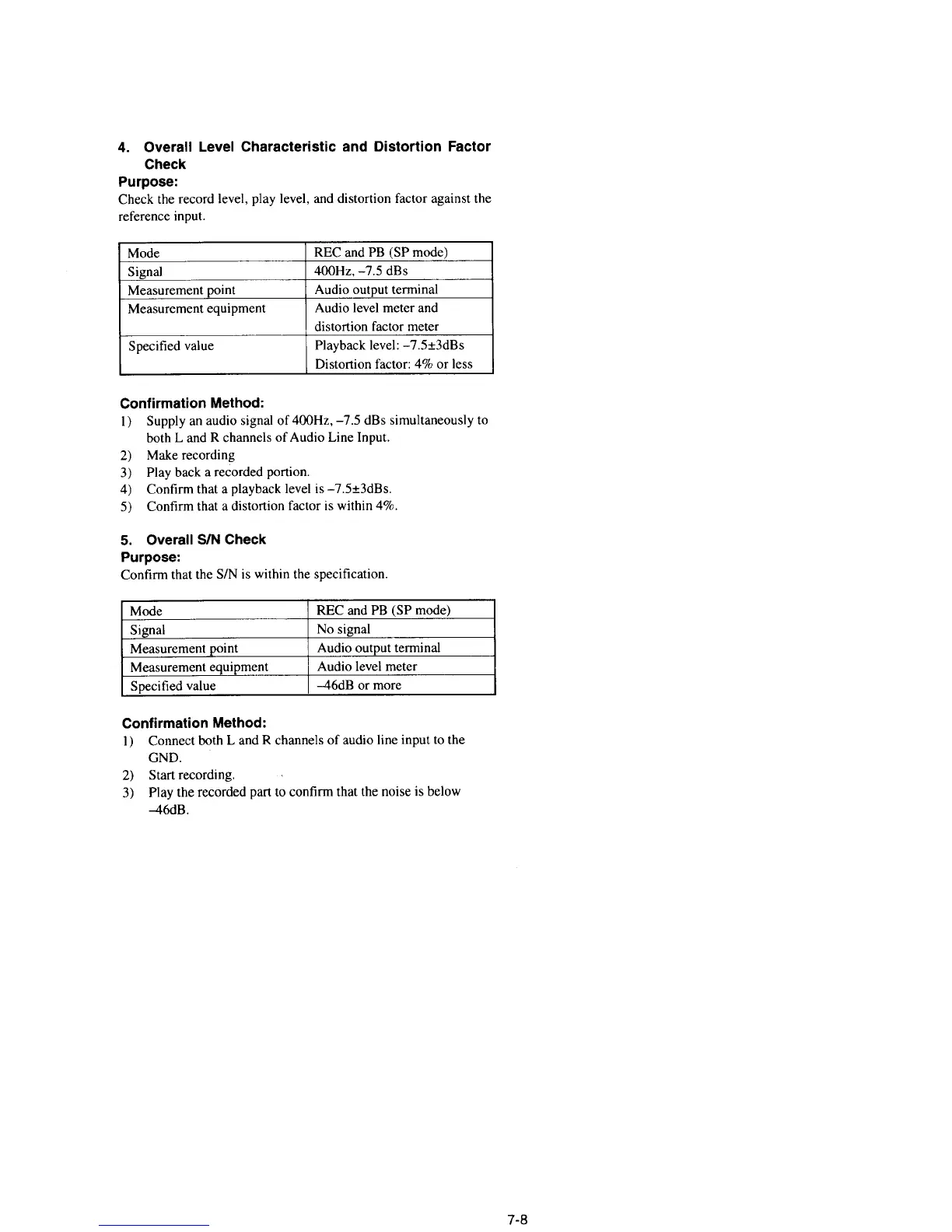 Sony SLV-E510EE - Overall Level Characteristic and Distortion Factor Check