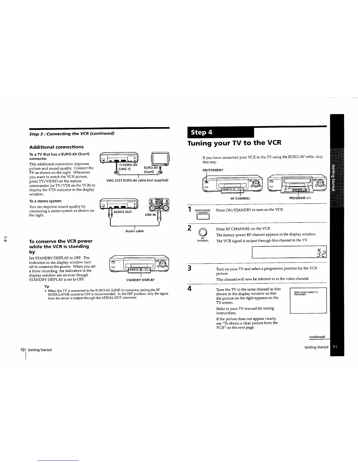 Sony SLV-E510EE - Additional connections; Tuning your TV to the VCR