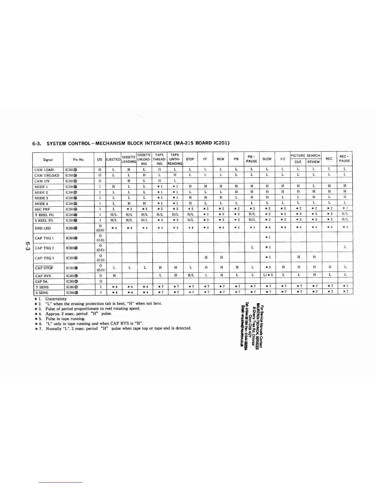 Sony SLV-E700 - System Control - Mechanism Block Interface